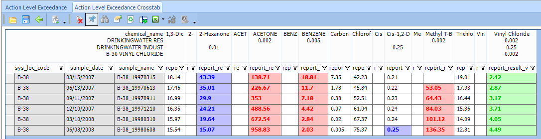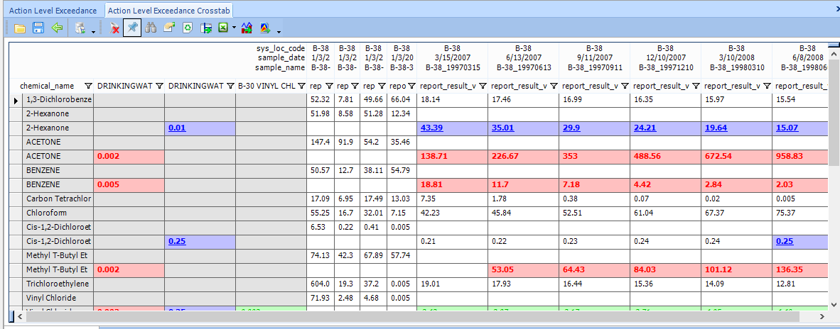 << Click to Display Table of Contents >> Navigation: Professional > Reports > Crosstab Reports > Formatting > Action Level Exceedance - Row and Column Header Colors |