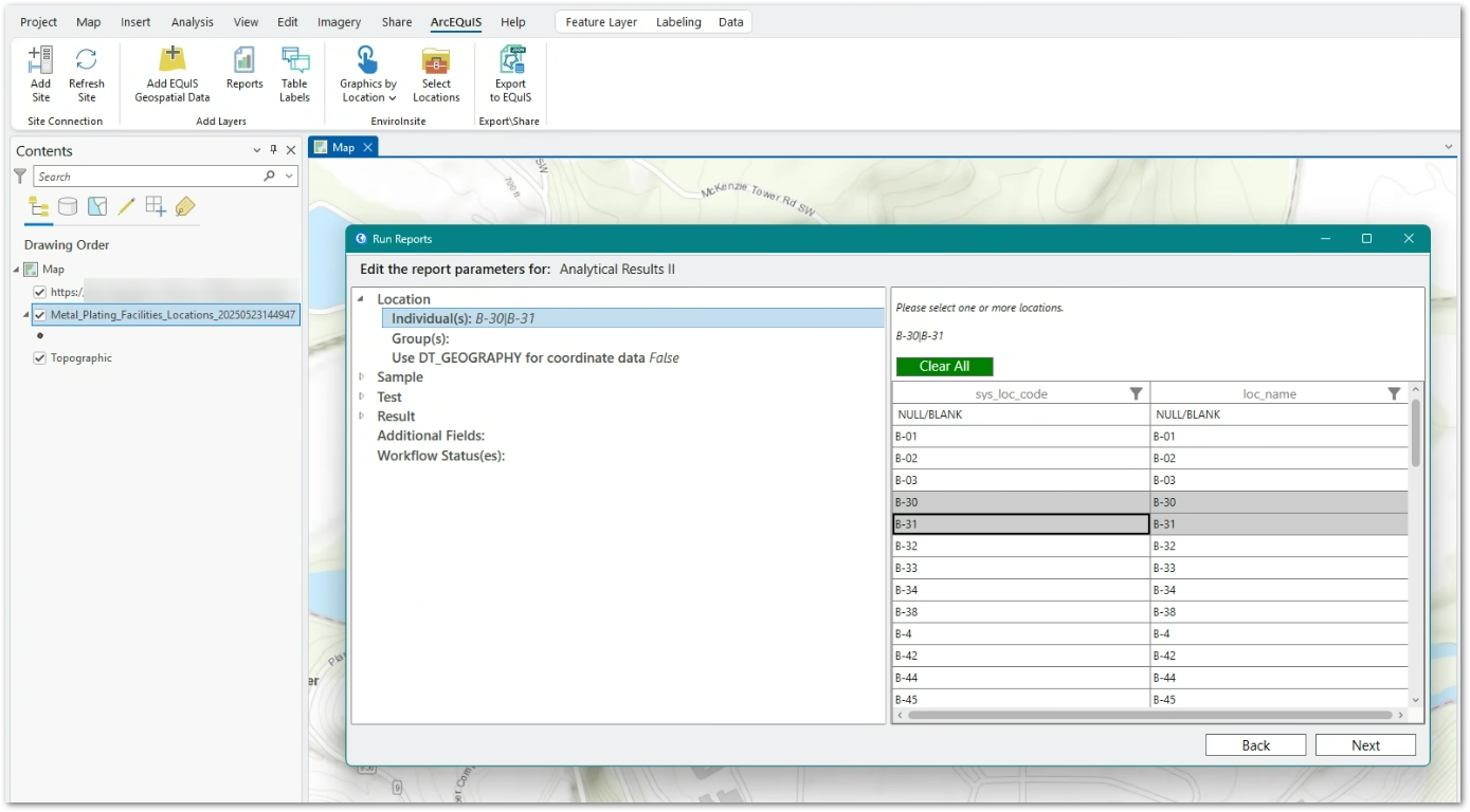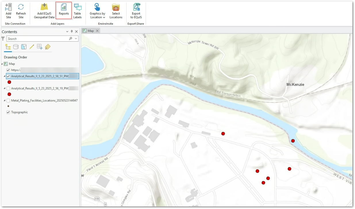 << Click to Display Table of Contents >> Navigation: ArcEQuIS > Add Layers > EQuIS Reports in ArcGIS Pro |