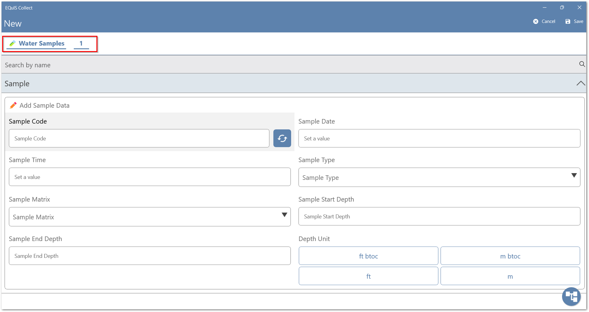 To start entering data in a new form record tap the New button or click the desired record you wish to enter data in if the data form is pre-populated.