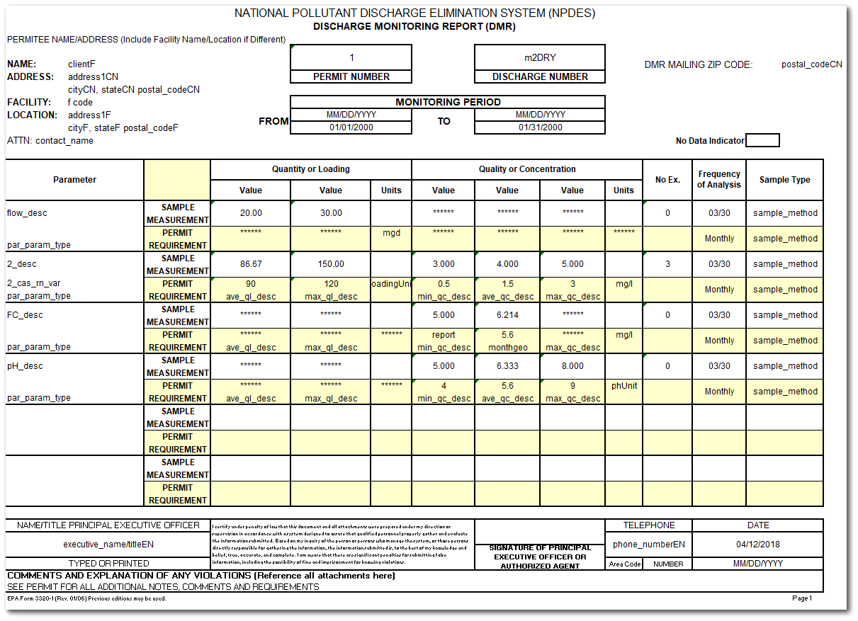 •Run custom EQuIS reports for the state-specific DMR related to the facility-specific NPDES permit to generate the DMR for reporting to the state agency or USEPA.