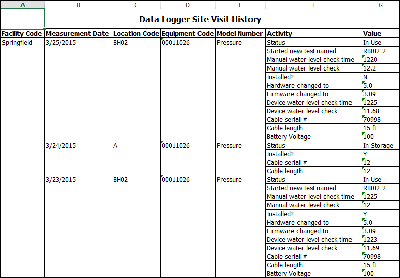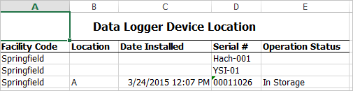 Description: The EDGE Equipment and Datalogger Report creates three different reports (Data Logger Device History, Data Logger Site Visit History, and Data Logger Device Location) based on selection of the Report Type parameter.