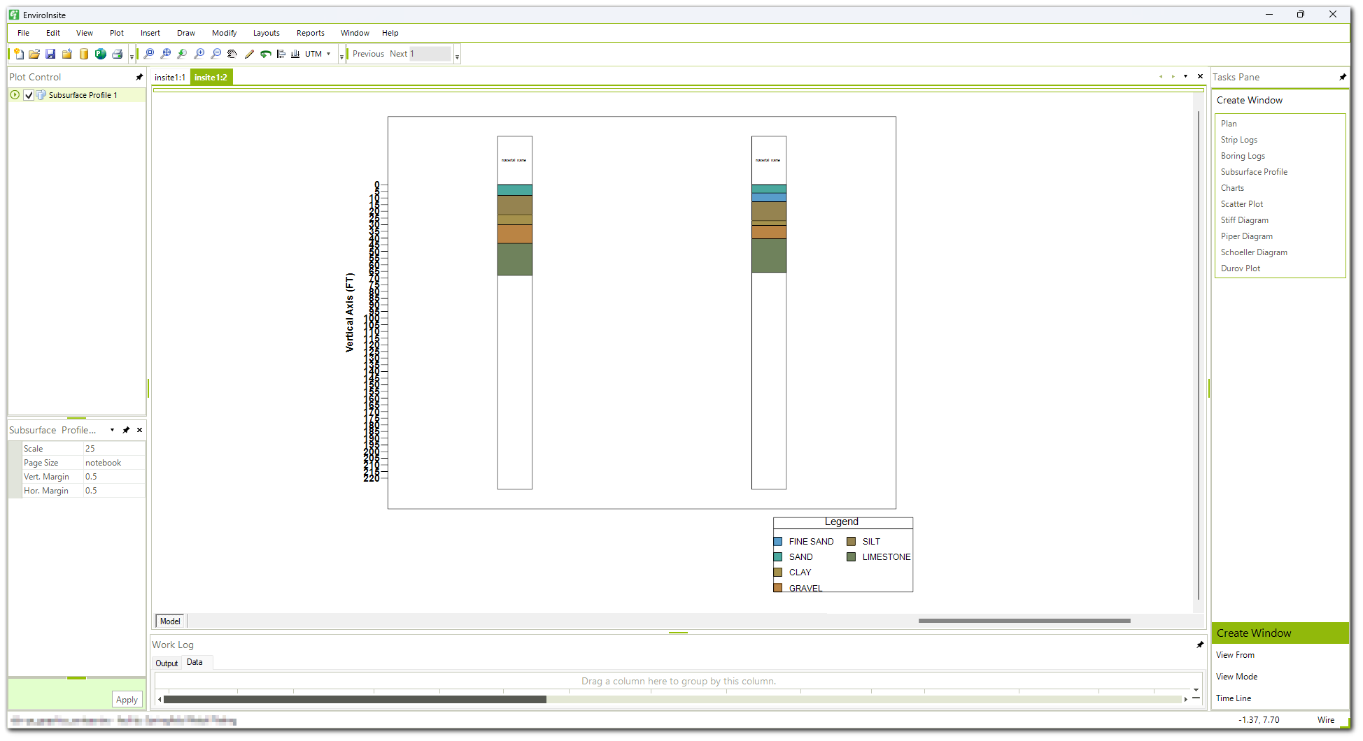 Note: The material legend will display only materials present in the locations selected for the Subsurface Profile. |