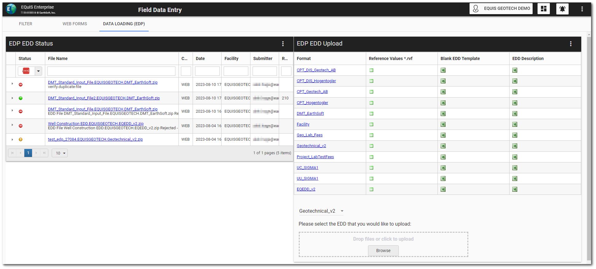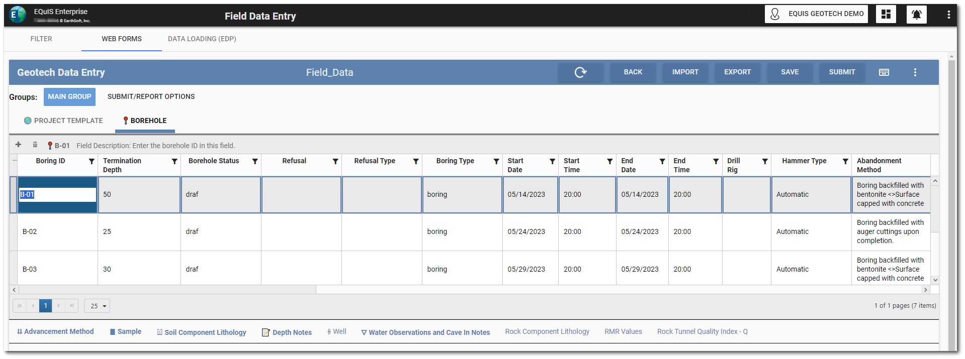 << Click to Display Table of Contents >> Navigation: Geotech > Dashboards > EQuIS Geotech Dashboard – Field Data Entry |