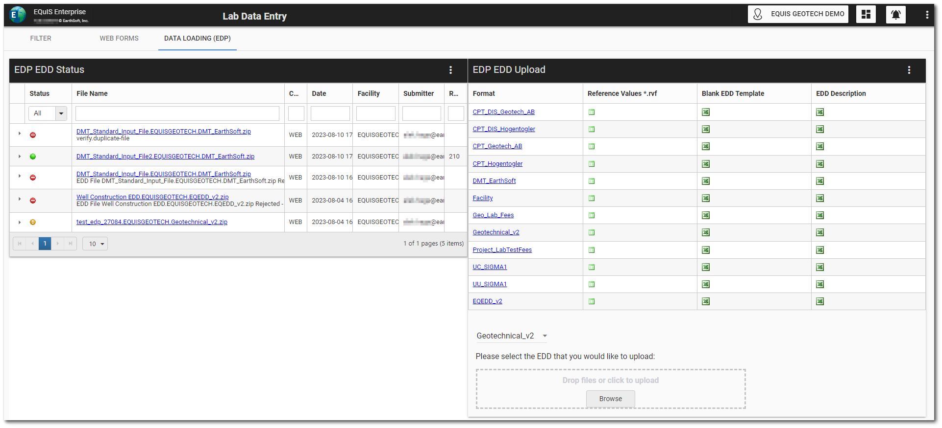 << Click to Display Table of Contents >> Navigation: Geotech > Dashboards > EQuIS Geotech Dashboard – Lab Data Entry |