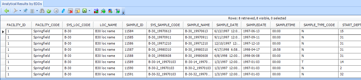 Source Tables DT_FIELD_SAMPLE, DT_LITHOLOGY, DT_LOCATION, DT_RESULT_QC, DT_SAMPLE, DT_STATIC_PROPS, DT_SUBFACILITY, DT_TASK, DT_WATER_LEVEL, DT_WELL