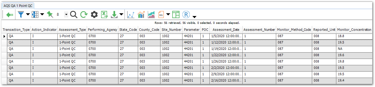 Description: This report indicates equipment parameter data under selected parameters such as locations, analytes, etc. associated with the AQS QA 1 Point QC transaction type.