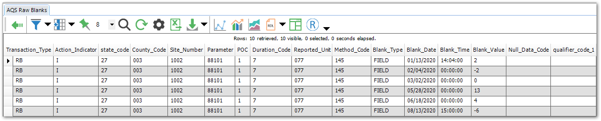 Description: This report indicates sample, test and result data under selected parameters such as locations, analytes, etc. associated with the AQS Raw Blanks transaction type.