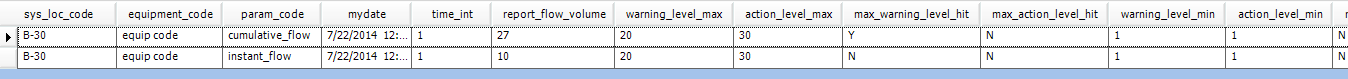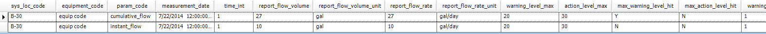 MIN_WARNING_LEVEL_HIT MIN_ACTION_LEVEL_HIT REPORT_FLOW_VOLUME_UNIT ACTION_LEVEL_REMARK AVERAGE_REPORT_FLOW_RATE or REPORT_FLOW_RATE REPORT_FLOW_RATE_UNIT |