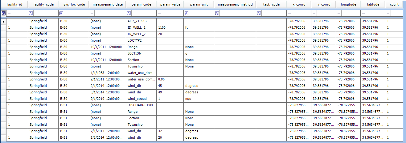 FACILITY_ID FACILITY_CODE SYS_LOC_CODE MEASUREMENT_DATE PARAM_CODE |