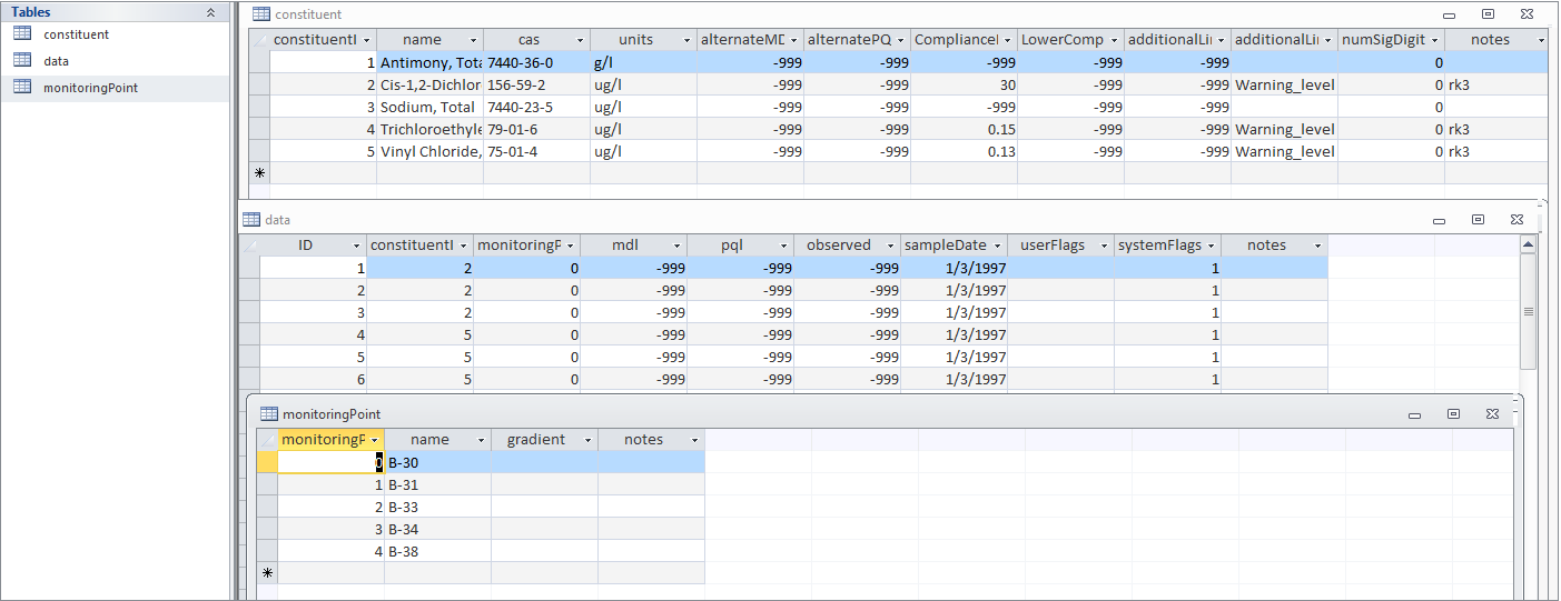 Tables: DT_ACTION_LEVEL, RT_ANALYTE, RT_FRACTION, RT_GROUP, RT_MTH_ANL_GROUP