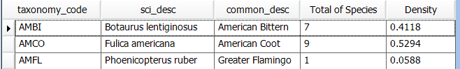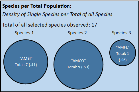 Description: This report output includes the Total of Species (quantity of each species) and generates the Density for each species by dividing the Total of Species by the total quantity of all species at all subfacilities (aka locations) for the selected survey.