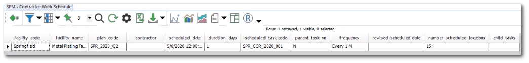 Description: The SPM - Contractor Work Schedule report provides users with the ability to review and update field work schedules for contractors. This report can be used with the SPM Format to update SPM scheduled task dates.