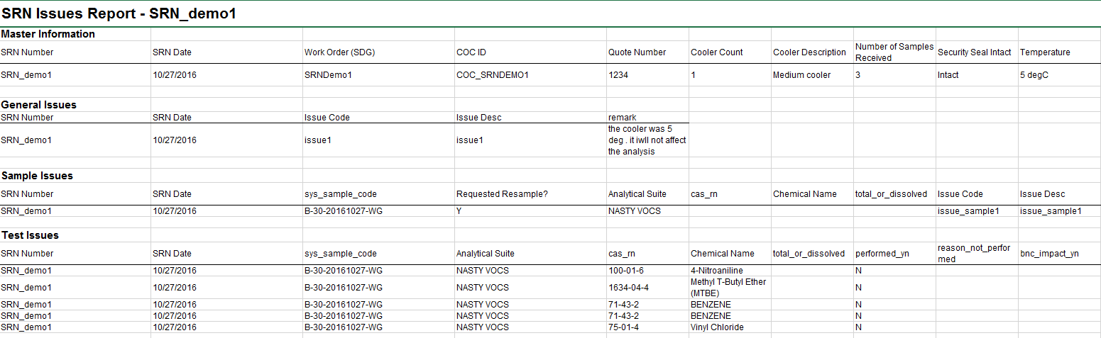 << Click to Display Table of Contents >> Navigation: EQuIS Library > Reports > Standard Reports by Product > Standard with SPM > SPM - SRN Issues Report |