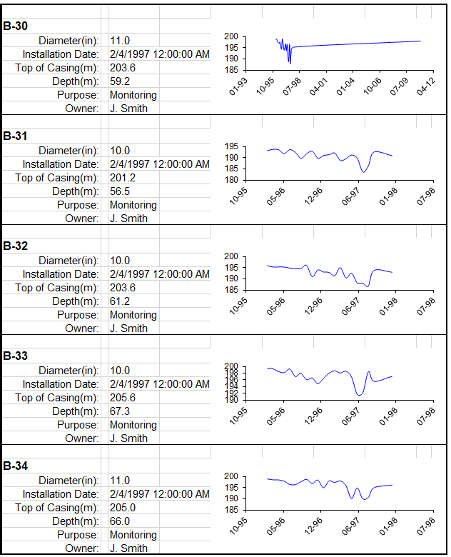 Description: The Water Level Info Report generates water level (DT_WATER_LEVEL.EXACT_ELEV) data of selected locations in the form of graphs, plus other location information such as well diameter, installation date, top of casing, depth, purpose and owner.