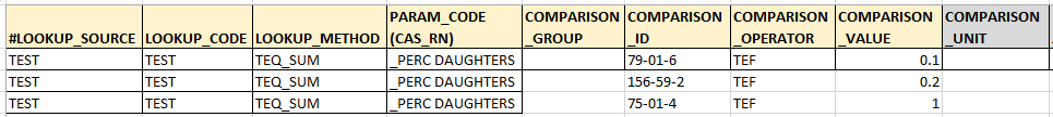 •COMPARISON_ID (20 char): The CAS_RN of the analyte to multiply by the TEF.