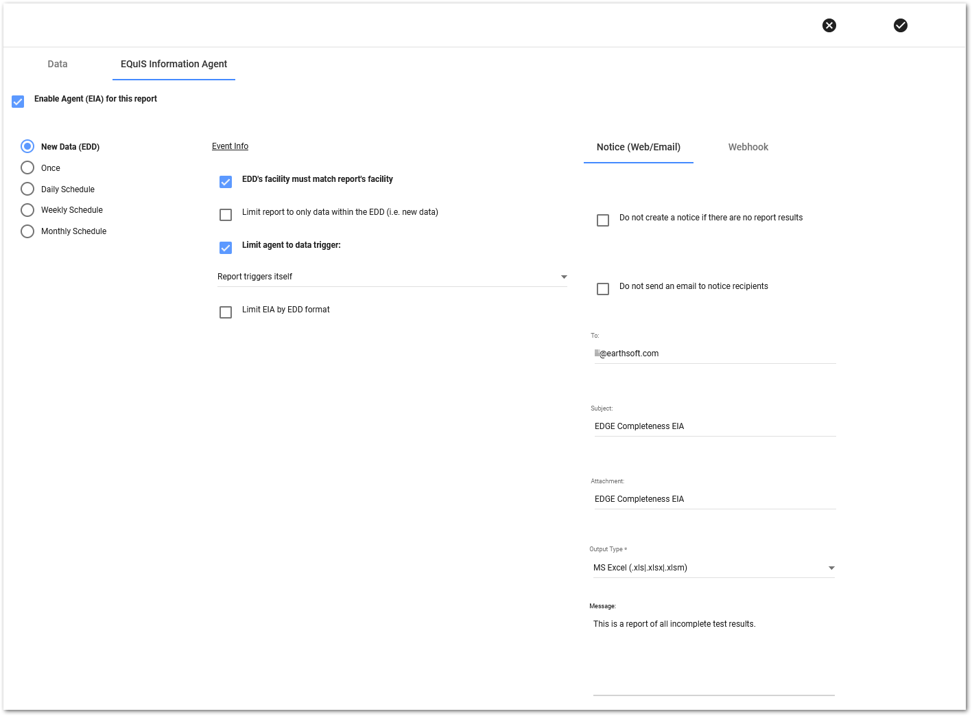 12.The EIA is now configured. Each time an EDGE or results EDD is loaded, the users detailed in the 'To' box should receive an email detailing the completeness of their EDD submission.
