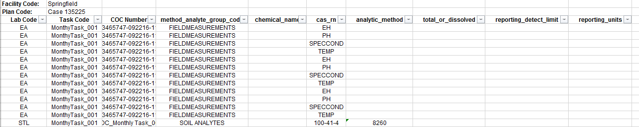 Tables: DT_FACILITY, DT_SPM_PLAN, DT_CHAIN_OF_CUSTODY, RT_MTH_ANL_GROUP, RT_MTH_ANL_GROUP_MEMBER, RT_ANALYTE, DT_CHAIN_OF_CUSTODY_MAG, DT_CHAIN_OF_CUSTODY_MAG_MEMBER
