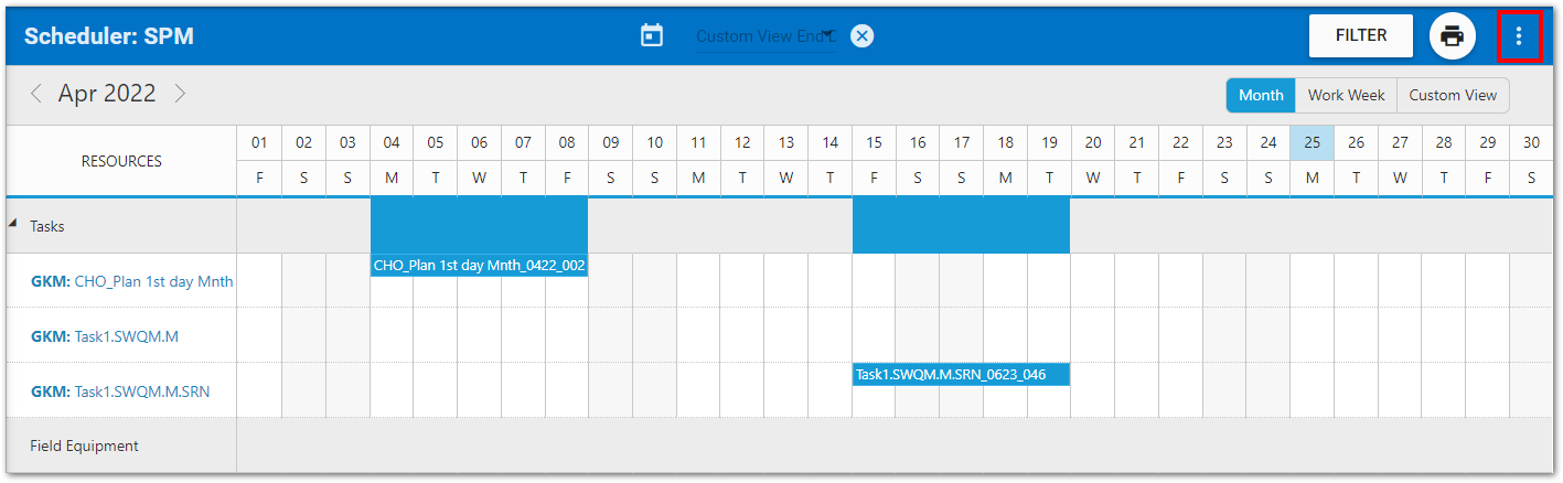 On the Scheduler page, tasks are displayed by default as the planned task code. Frequently, a planned task name has also been populated, which can be more easily recognizable. If planned task names are available, administrator users can configure the SPM dashboard to display task names instead by editing the displayTaskName JSON property.